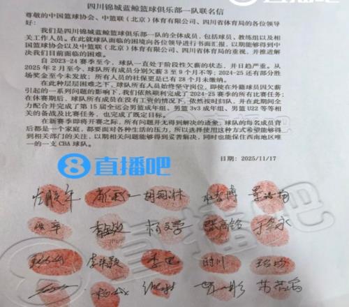 之所以出现这样的困境,是因为他们一直都存在欠薪的情况,甚至从23-24赛季就开始了。而从2025年起,球队的所有球员分别欠薪3至9个月不等,球队的部分奖金没有发,甚至出现28个月的社保没有缴纳。这主要的核心问题肯定还是因为四川没钱了,不然他们也不会发布这样的联名信。