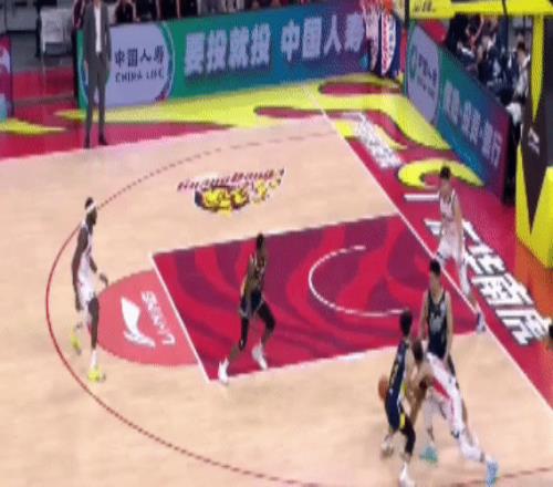 第二节:广州队发动进攻,邵炜昀三分命中。广东打阵地战,稳扎稳打。——广州4号托马斯,打出精彩进攻,一个背身运球后,送出高抛助攻,队友威金顿拿分。