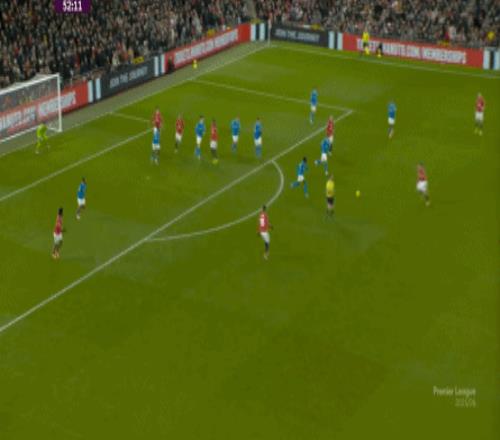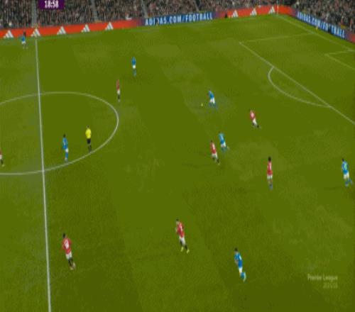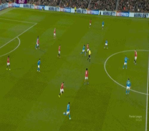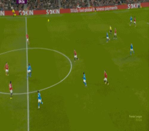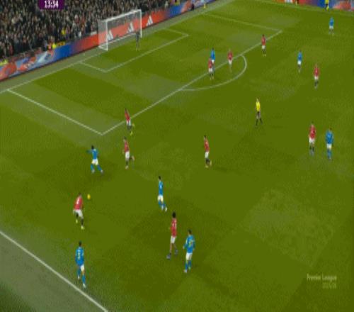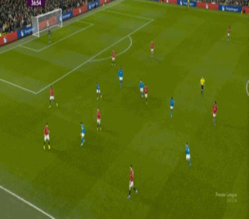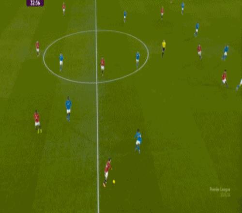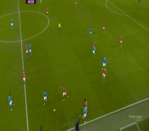 也能通过捕捉曼联的失误,吃掉库尼亚之后,从右路继续送出传中: