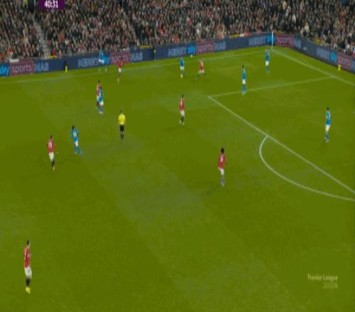 丢球的狼队开始提高强度,这让曼联面对的压力增加,但对手的体系也有开始出现松散的危险,于是曼联仍有表现,还能在达洛特的协助下,从右侧建立出转移到左侧的进攻线路:
