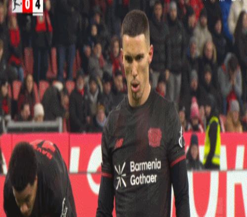 第66分钟,沙博特禁区犯规送点,格里马尔多操刀点射命中,勒沃库森1-4